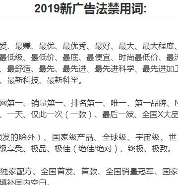 2019新广告法禁用词: 与最有关 最、最佳、最具、最爱、最赚、最[详细]